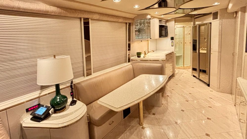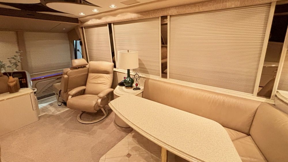 Beautiful, low mileage, garage kept, Prevost Marathon XLII2S. This light and airy, Marathon features an large flat screen TV at the aft end of the slide, lounge dinette, Lafer recliner, dishwasher, stacked W/D and so much more. This wonderful coach includes 4-roof A/C's w/heat pumps, Webasto hydronic heating, 2-4,000 watt Trace inverters, a 20KW turbo genset, 4 roof top awnings, and more! This fantastic coach shows true pride of ownership throughout. Please contact us to learn more about this marvelous Marathon Coach.