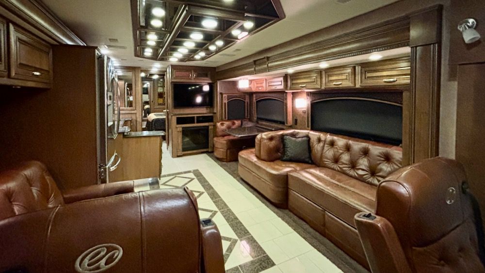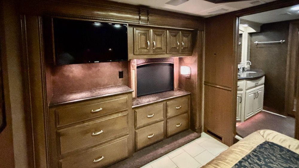 Beautiful, low mileage, garage kept, bath & 1/2 Cornerstone 45K! This beautiful coach is powered by a 600HP ISX Cummins, and features 3 roof A/C's, Aqua Hot 450, 12.5KW Onan diesel genset, 150 gallon fuel capacity 15K towing capacity, and so much more! This wonderful coach includes a stacked W/D, dishwasher drawer, King bed, double vanity, Cedar lined closet, pull-out counter extension, stainless steel residential refrigerator,,4-flat screen HD TV's, electric fireplace, and more. This coach includes new house batteries, recent tires, huge exterior storage, exterior refrigerator/freezer, roof-top cantilevered awning, window awnings, and so much morte. Please contact us to learn more!